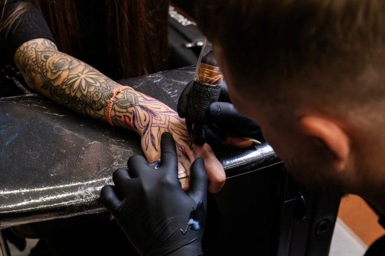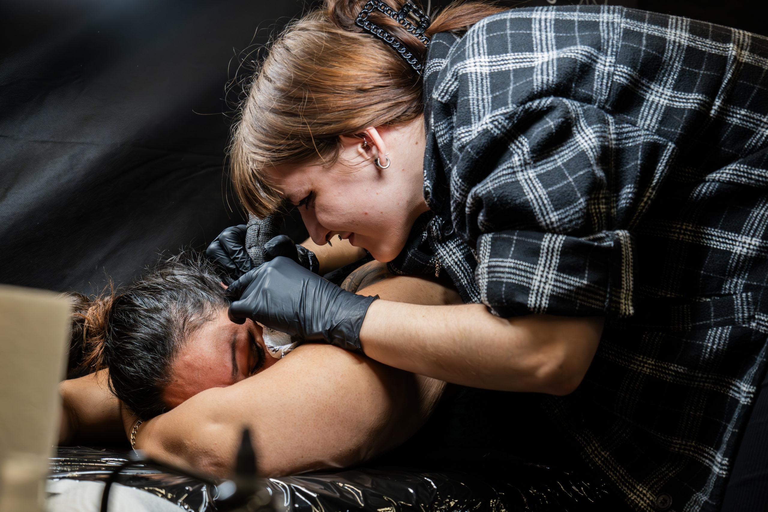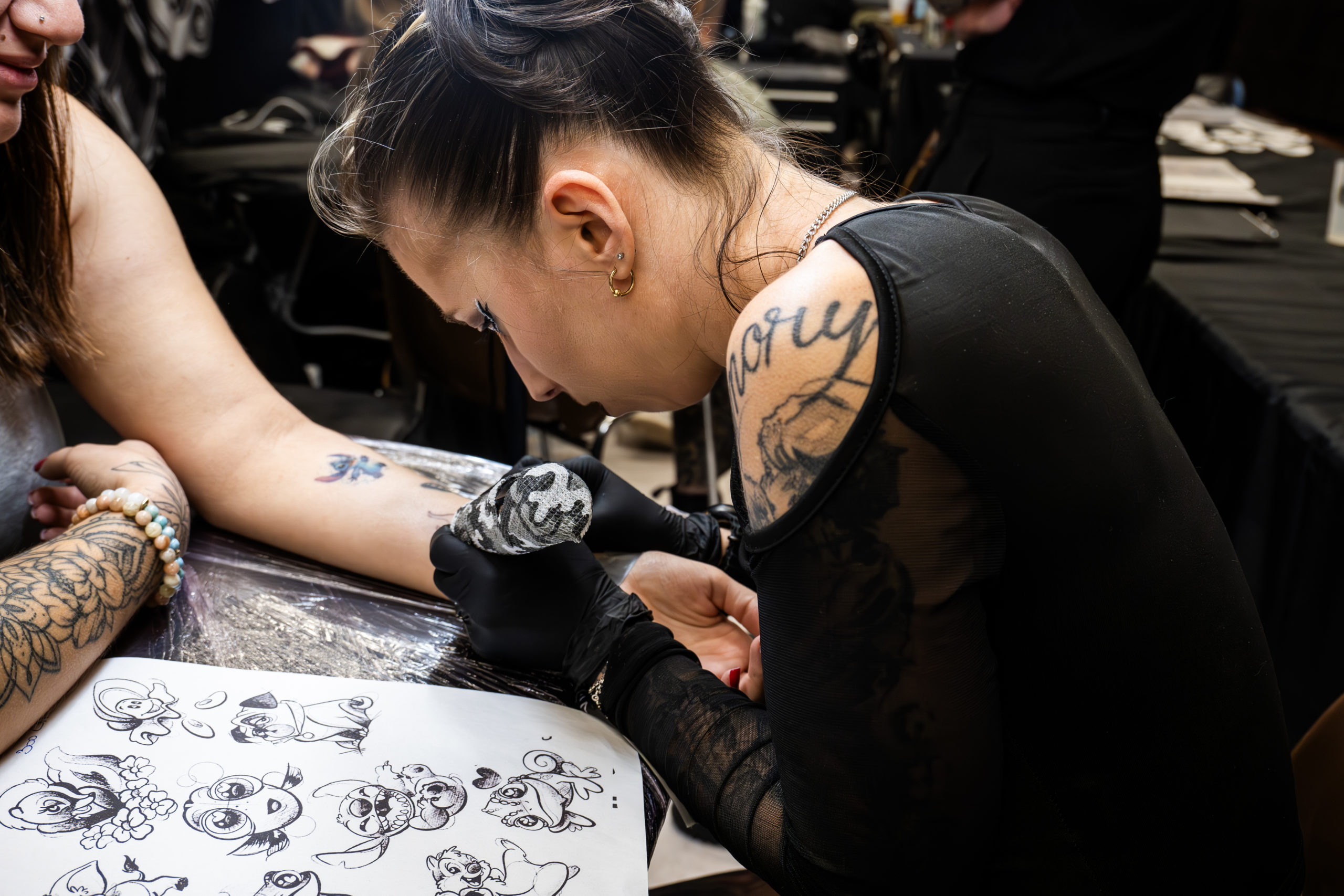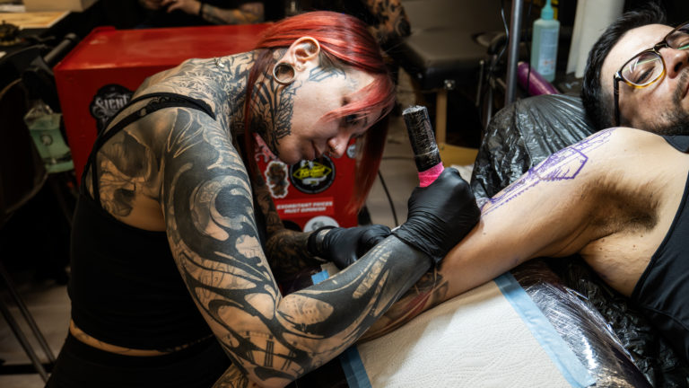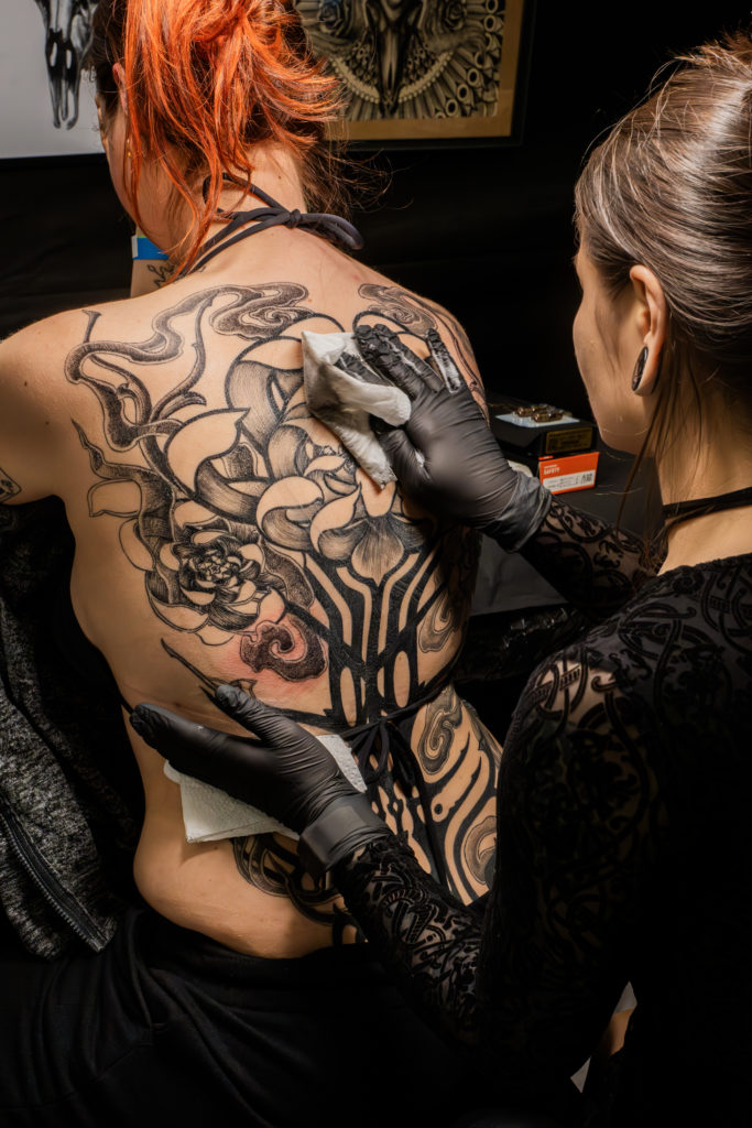- Des scènes de tatouage en cours, capturant précision et intensité