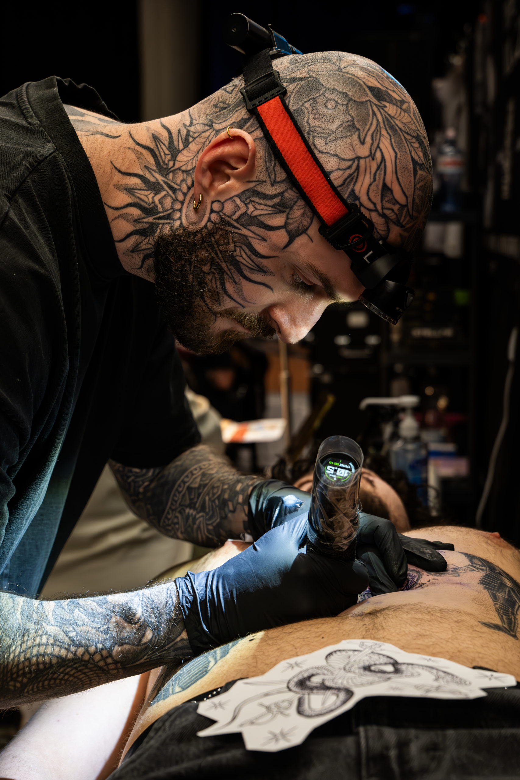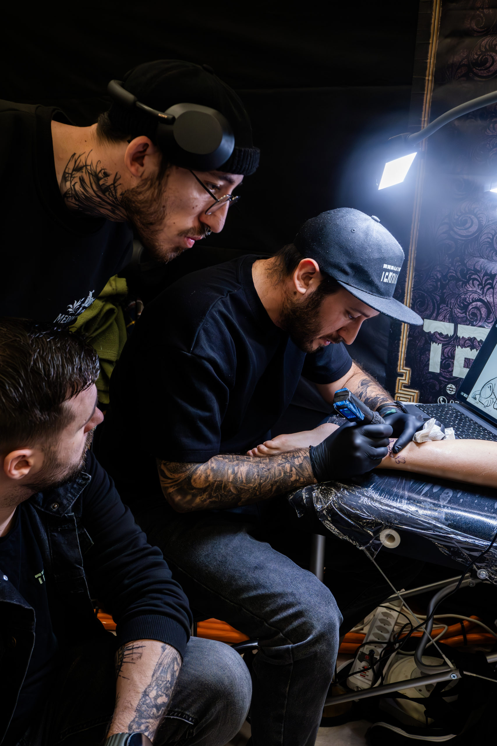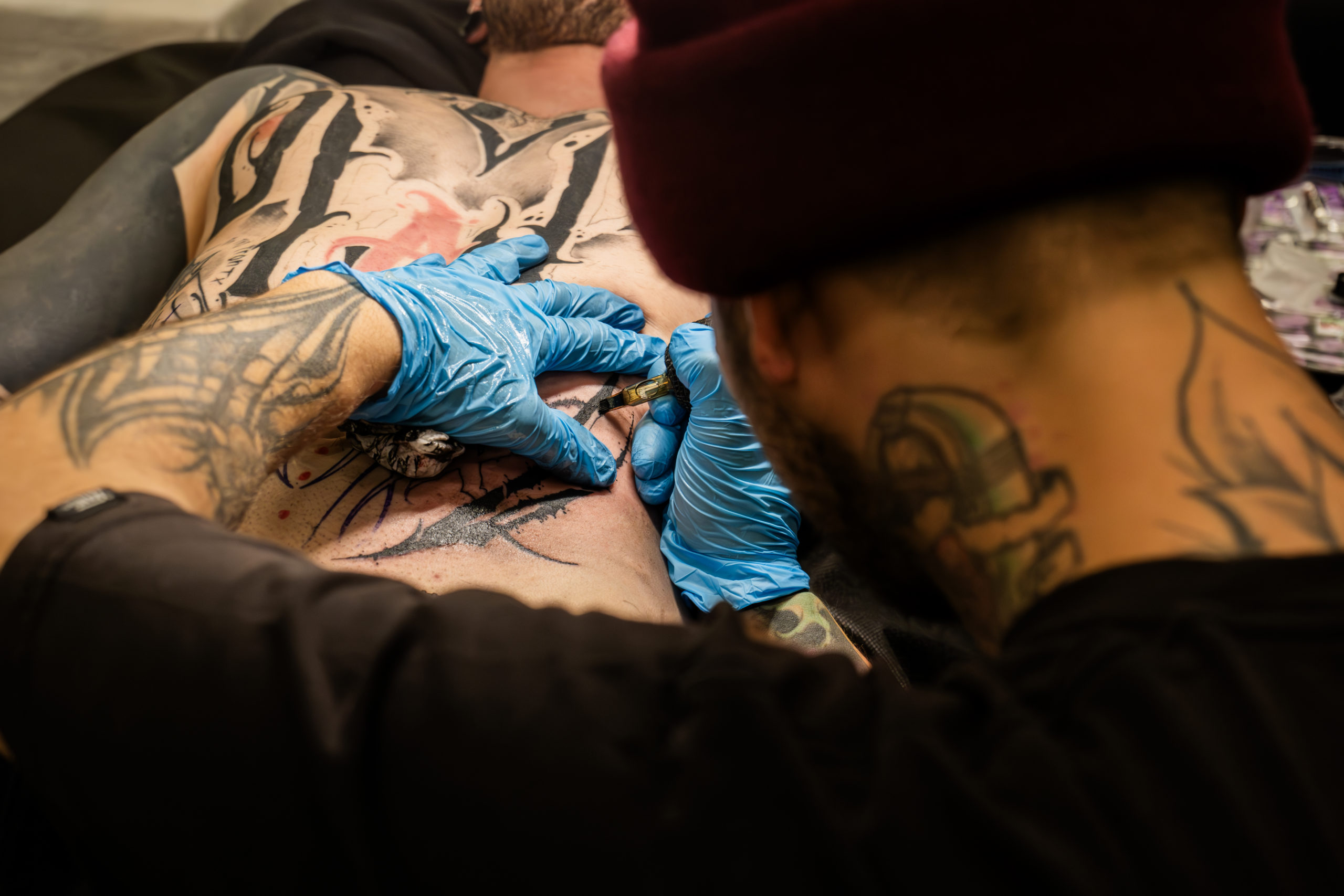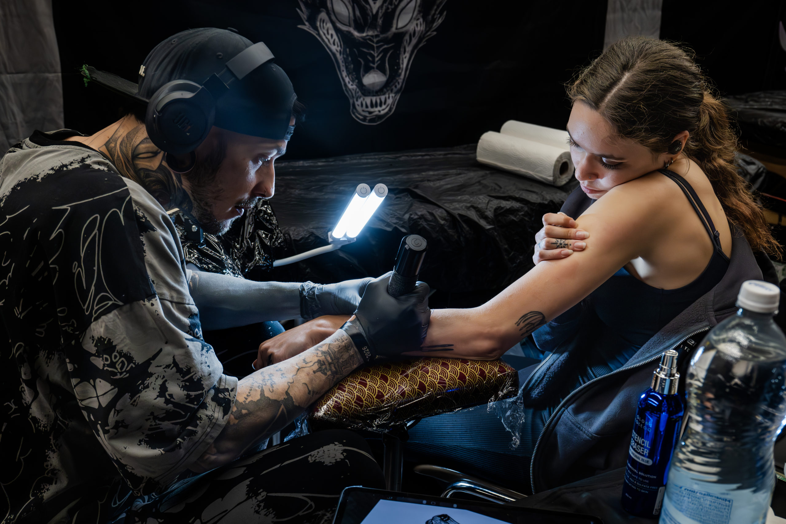 - Des scènes de tatouage en cours, capturant précision et intensité