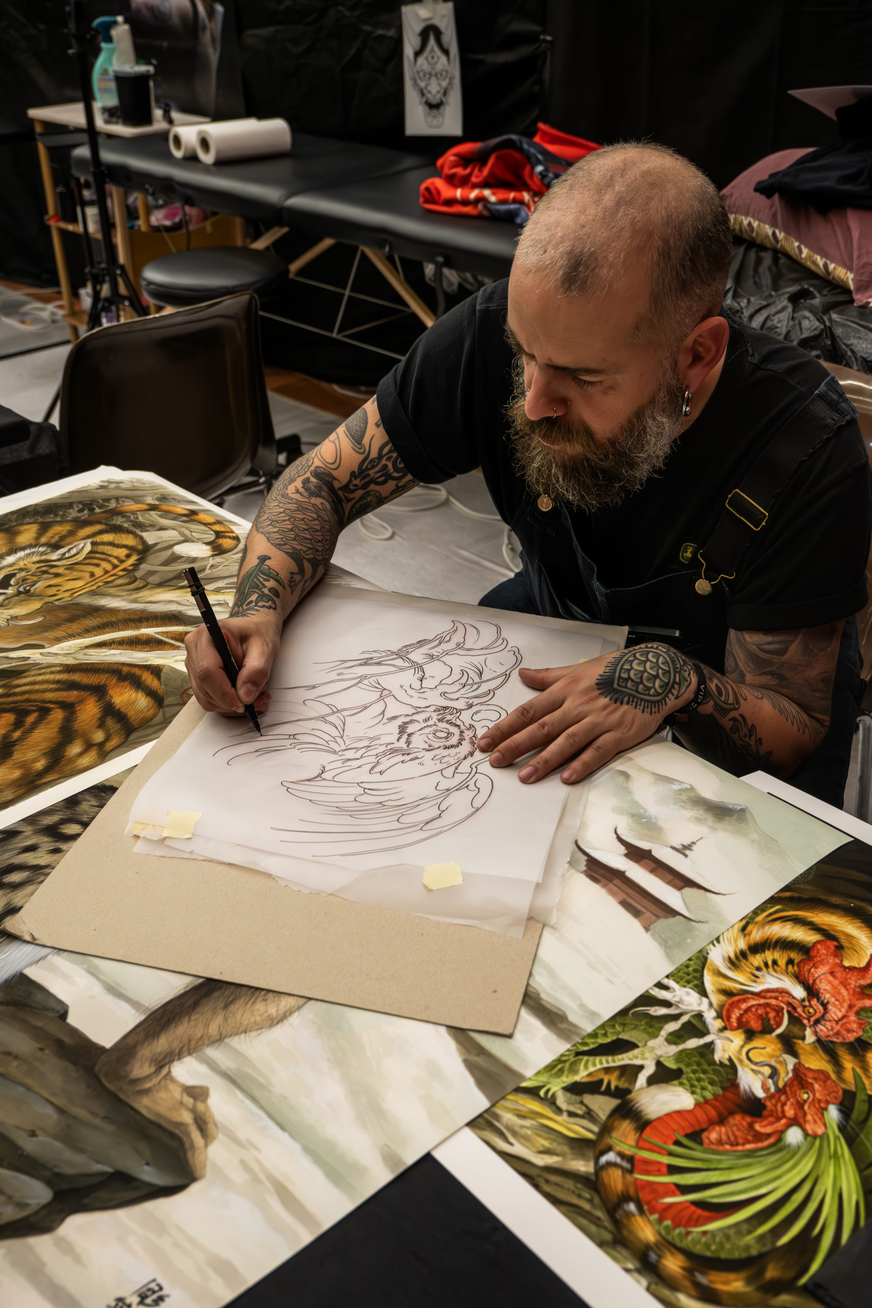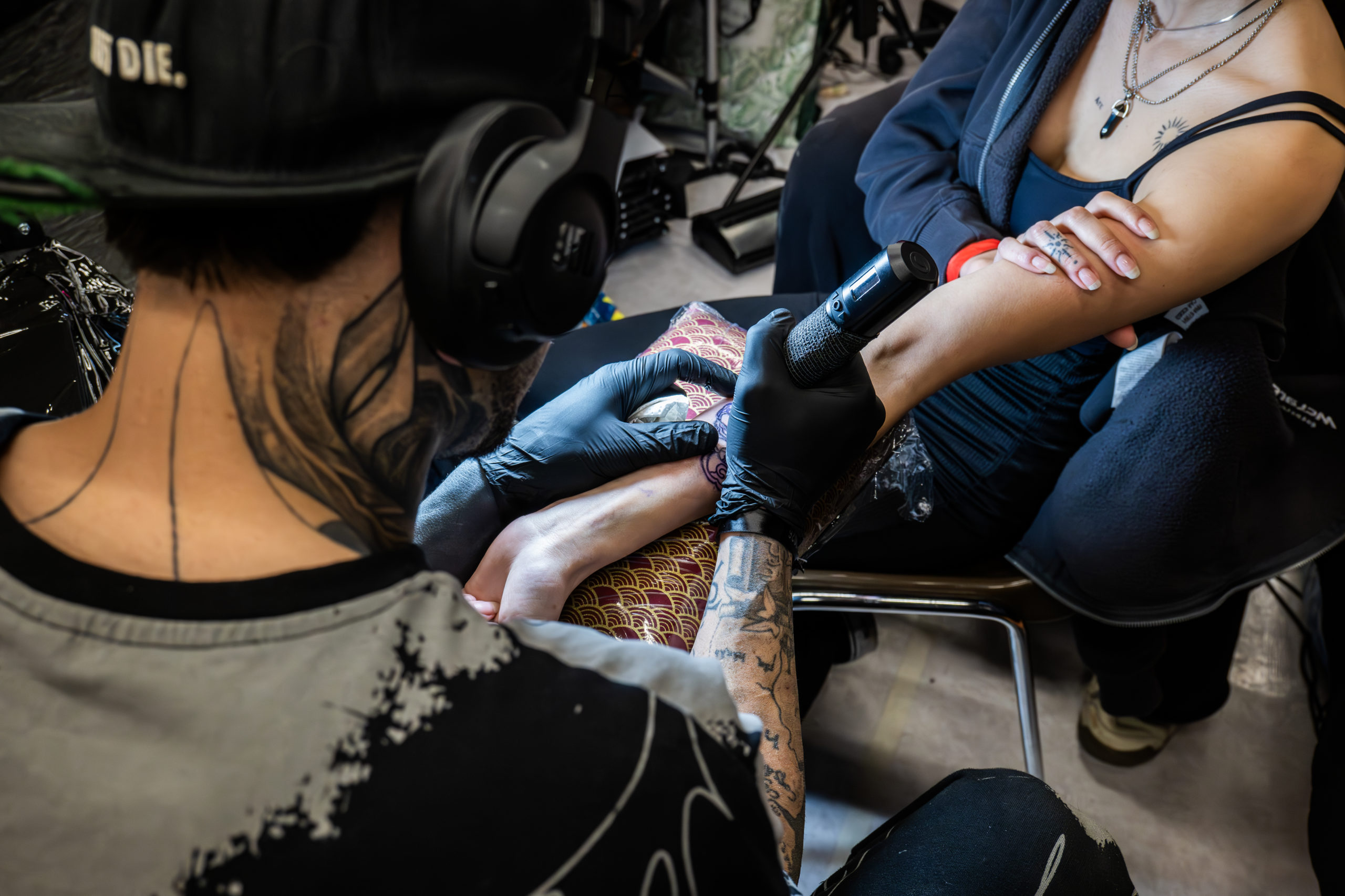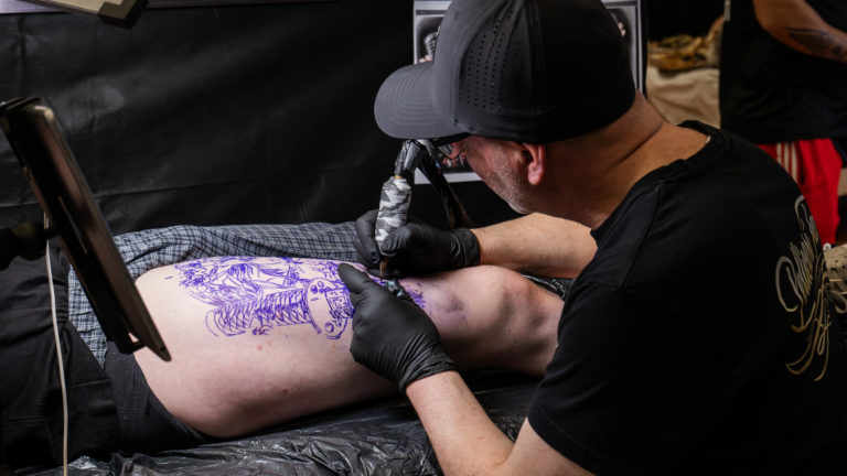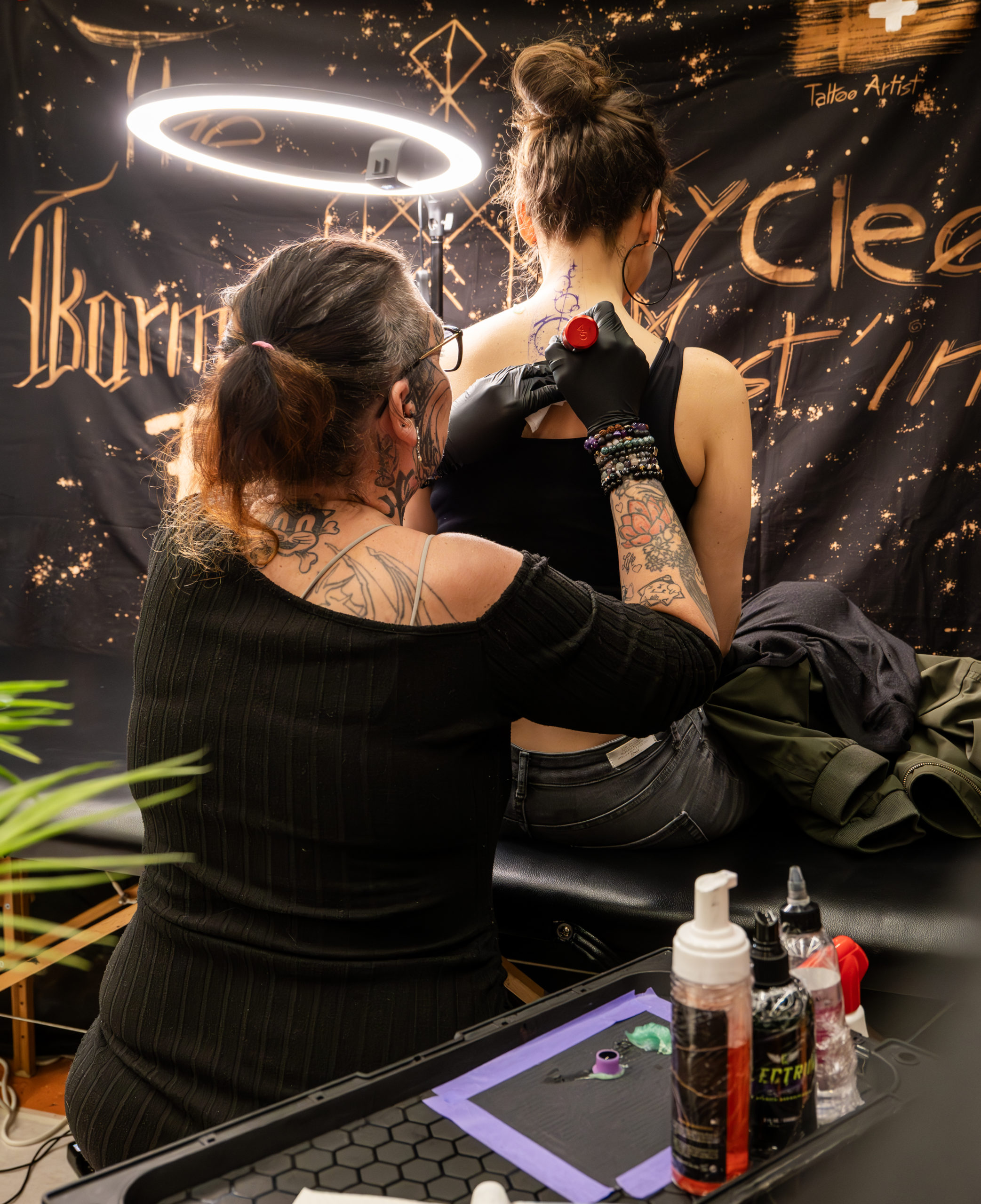 - Des scènes de tatouage en cours, capturant précision et intensité